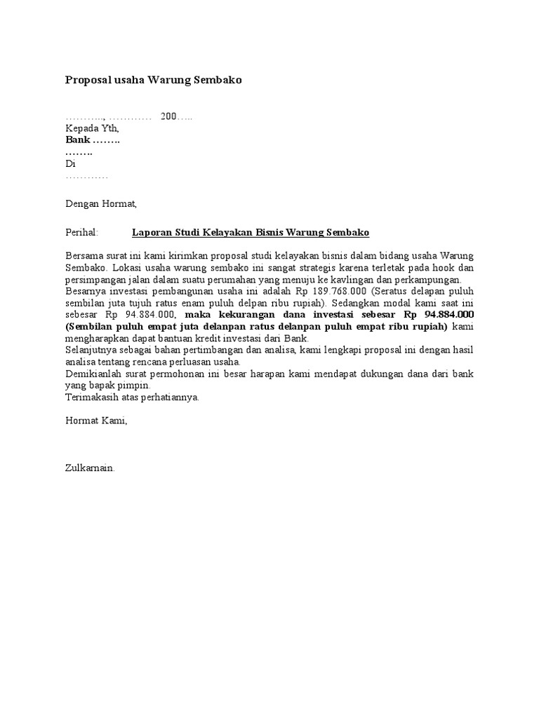 Contoh Proposal Bantuan Dana Usaha Kios