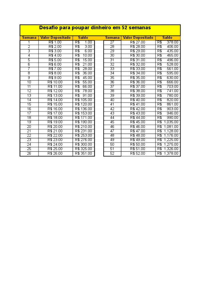 Desafio 52 Semanas 7 Reais Pdf